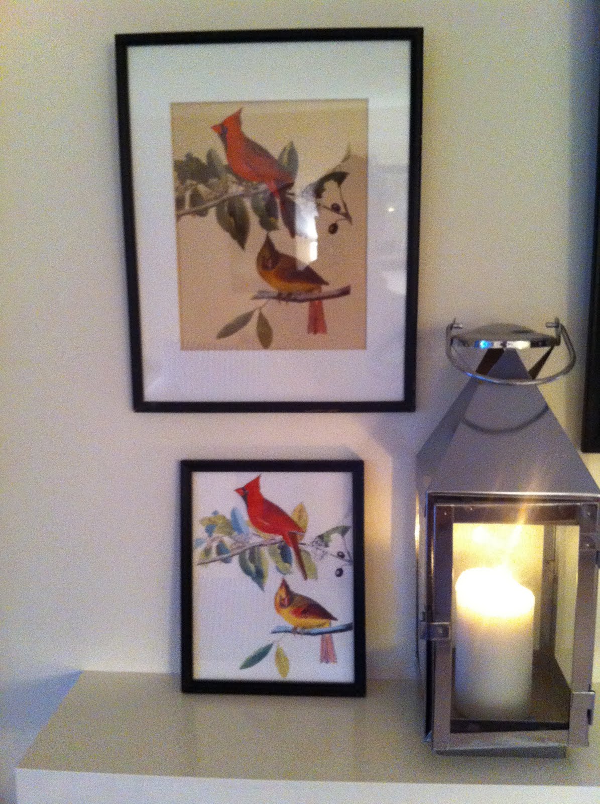 I started at Glory Days, one of the best kept antique secrets in the valley. Loads of vendors with high quality fun stuff, not crafty, genuinely antiques. I spotted two pretty little bird drawing prints that I thought went well with some other similar rustic/natural and pretty colored drawings I already had.